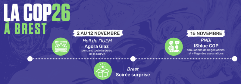 Auparavant, vous pourrez découvrir l’Agora Glaz dans le hall de l’IUEM du 2 au 12 novembre ! Au programme : diffusion en direct des événements  “océan” de la COP26, décryptages et résumés des avancées des négociations, échange avec des experts des enjeux océan-climat…