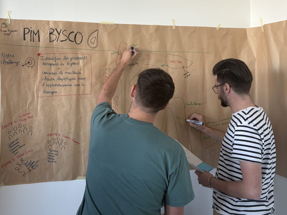 Bysco développe une innovation fondée sur le recyclage du byssus, également appelé soie marine, une fibre naturelle produite par les moules. Cette ressource offre des perspectives prometteuses comme alternative durable dans la fabrication de textiles traditionnels, de textiles techniques, d’isolants thermiques et d’absorbants acoustiques. Dans un contexte de croissance et d’ouverture à l’international, l’entreprise a sollicité les étudiant·es afin de réfléchir aux conditions d’un développement à l’échelle européenne à la fois viable économiquement et soutenable pour l’environnement.