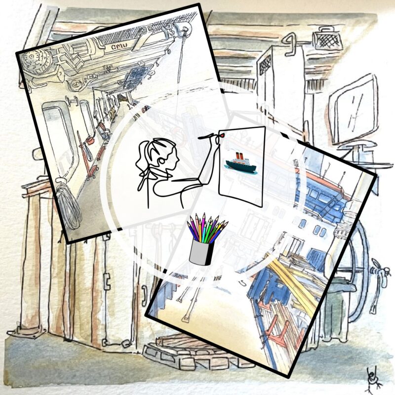 Lors de la mission, Valentine Delattre, créatrice de contenu de la chaîne YouTube « Science de Comptoir », a immortalisé des instants de vie à bord du Marion Dufresne en réalisant des aquarelles.