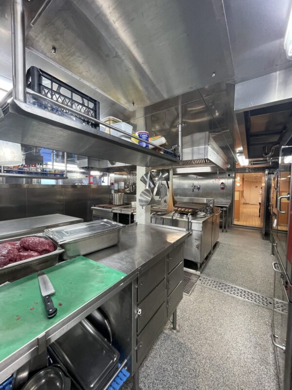 À bord du N/O Pourquoi Pas ?, l’un des moments les plus attendus et appréciés est le repas. C’est un instant de réconfort et de convivialité que personne ne veut manquer. L’équipe de cuisine, véritable cœur battant du navire, est indispensable. Elle se compose d’un cuisinier, d’un second, d’un aide de cuisine polyvalent, de deux maîtres d’hôtel et d’un garçon.