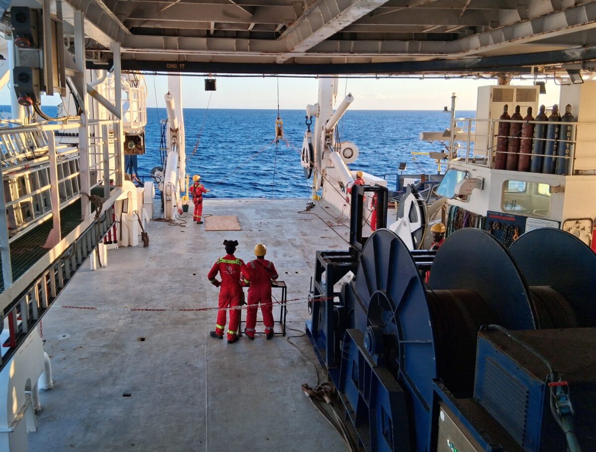 Pour MAYOBS-33, l’équipe de dragage a pu réaliser 3 opérations, dans différentes zones. L’équipe est composée de Carole Berthod, physicienne adjointe à l’IPGP, Kalini Brückel, post-doctorante au laboratoire Magma & Volcans, Lisa Corrotti et Cloé Falc’hun, doctorantes dont vous pourrez retrouver la présentation dans notre rubrique MAYOBS33 en scène.
