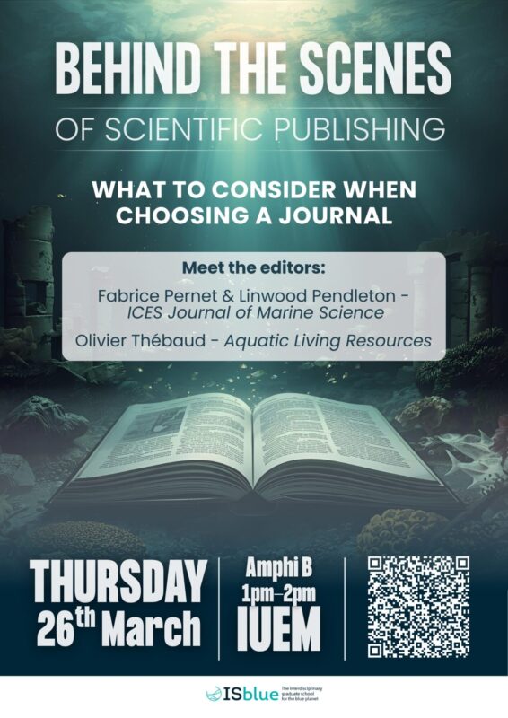 This second edition of the cycle Behind the Scenes of Scientific Publishing will be presented by the editors Fabrice Pernet (LEMAR, Ifremer) and Linwood Pendleton (AMURE, UBO) for ICES Journal of Marine Science and Olivier Thébaud (AMURE, Ifremer) for Aquatic Living Resources.
