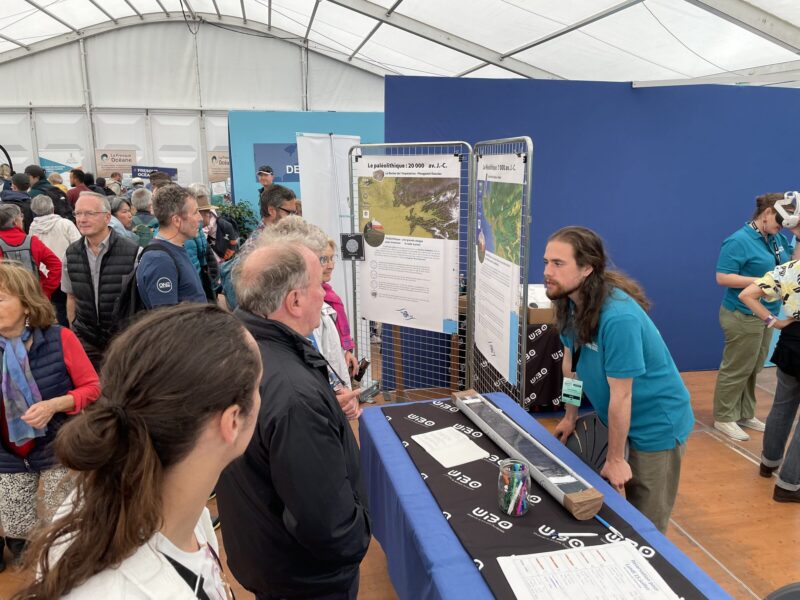 On Monday 15 July, Mike Horn and Marine Barnerias, the sponsors of the ‘Protection of the Oceans’ Village, visited the ImmerSEA RADE stand and talked to Nina Gien, a geosciences student at the Institut Universitaire Européen de la Mer (IUEM) at the Université de Bretagne Occidentale, about the role of scientific outreach to the general public.