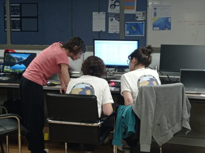 La cheffe de quart, Estelle, a pris en charge les deux étudiantes afin de leur communiquer les différents postes d’acquisitions correspondant à chaque outil. Le premier poste auquel elles ont été sensibilisées est le poste « CASINO+ » (CAhier de Suivi Informatisé du Navire Océanographique). Comme l’indique son nom, il s’agit du cahier de quart scientifique informatisé (Fig. 1). Étant en lien avec la grande majorité des appareils de géophysique, il s’occupe de répertorier et d’enregistrer automatiquement les données (toutes les 30 secondes).