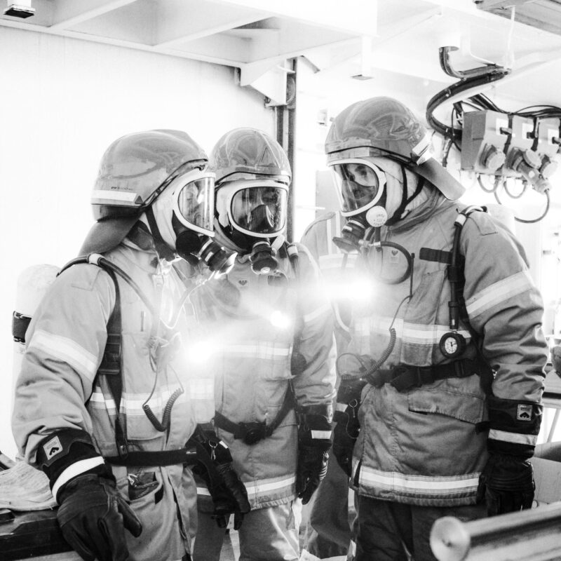 « La mise en situation était très impressionnante, j’ai été placée dans le local tourneur dans le noir avec de la fumée épaisse diffusée par un appareil. Une fois que l’alarme incendie a retenti à bord, une équipe de marins « habilitée pompiers » a immédiatement été déployée à l’alerte du feu. La fumée était tellement épaisse qu’ils ne m’ont pas tout de suite repérée. L’évacuation a été très rapide et des membres de l’équipage sont venus pour appliquer les premiers secours auxquels ils sont formés, suivis de près par Thomas le médecin de bord. »