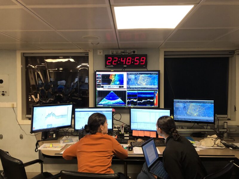 Cette période a surtout été marquée par le passage au-dessus du Fani Maore, le volcan qui est né de la crise sismo-volcanique et qui est à l’origine des campagnes MAYOBS pour la surveillance de son activité (voir Séminaire 1 des chefs de mission et Séminaire 4 de Fabien). Le poste de quart était rempli de monde pour le « voir » à travers les données bathymétriques. Le bateau se dirige maintenant vers la zone du Fer à Cheval (FC) au-dessus duquel de nombreuses opérations vont être programmées…