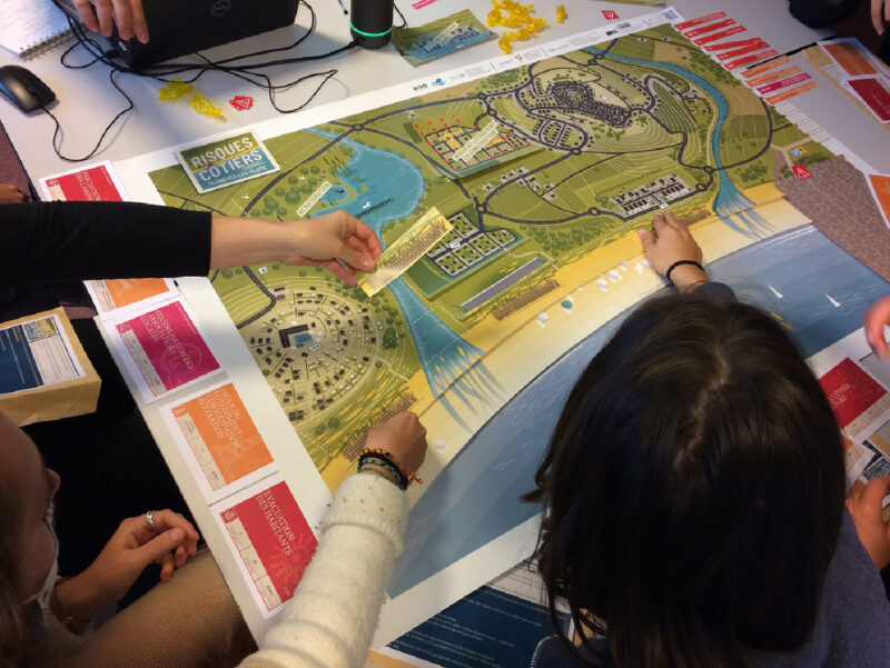 Plonevez-les-Flots est un jeu sérieux traitant des risques côtiers à partir d’un territoire fictif. Cette mise en situation permet à des apprenants de tester des méthodes de gestion selon les évènements qui se produisent (aléas). L’objectif principal est de mettre les apprenants en situation d’appréhender une question de gestion d’un espace, à la façon d’un gestionnaire, sans se limiter à une discipline.