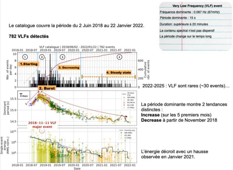 L’ensemble des analyses de ces VLF et le modèle de Jacques et al. (2024), présenté précédemment lors du Séminaire 8, permettent d’établir un scénario :