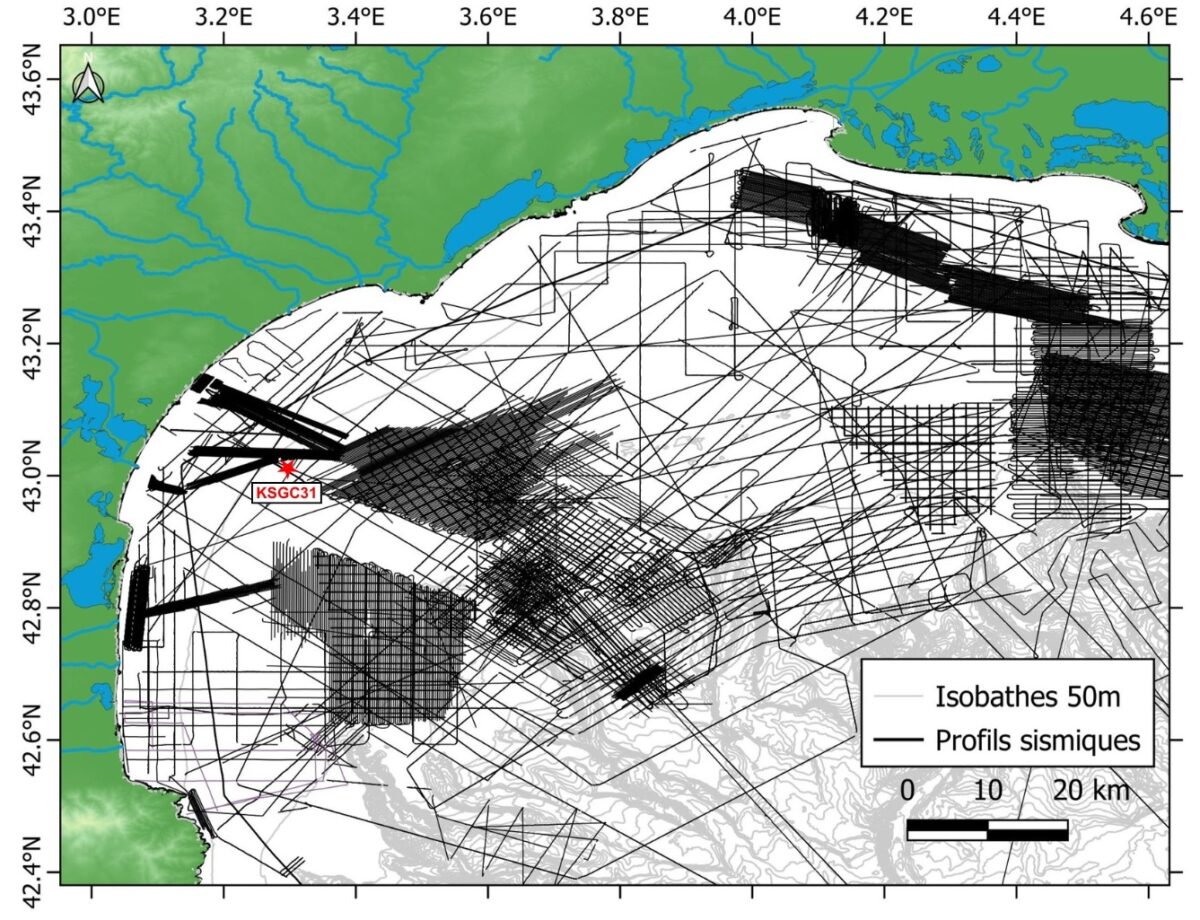 Pour cela, il a exploité une large base de données sismiques du golfe du Lion (Figure 1) et appliqué les principes de la stratigraphie séquentielle pour repérer et corréler les cortèges sédimentaires et identifier les unités rétrogradantes, la surface d’inondation maximum (correspondant à la stabilisation du niveau marin il y a 7,5 ka), et enfin les unités progradantes et aggradantes associées à des deltas de haut niveau marin.