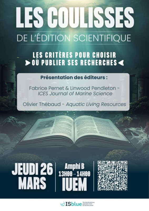Cette seconde édition du cycle Les coulisses de l’édition scientifique sera présentée par les éditeurs Fabrice Pernet (LEMAR, Ifremer) et Linwood Pendleton (AMURE, UBO) pour ICES Journal of Marine Science et Olivier Thébaud (AMURE, Ifremer) pour Aquatic Living Resources.