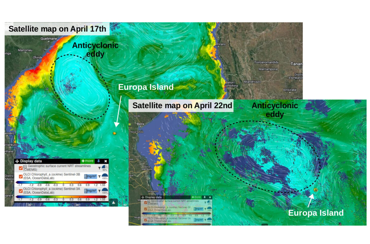 During the Leg1 we continuously re-adapted our sampling strategy: as for instance we discovered that the eddy was moving fast (more than though) eastward (you can look at its displacement in figure 5 with the eddy coming closer to Europa Island)! This is not surprising, we are in a continuously moving ocean. Its dynamics makes our sampling strategies challenging but it’s also what makes our researches so fascinating!